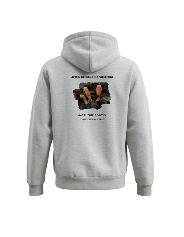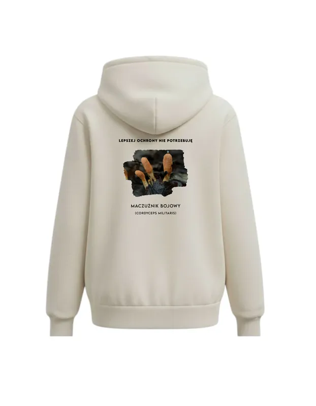 Bluza z kapturem zapinana na suwak, marki FUNGISNIPER – z nadrukiem maczużnika bojowego (kordycepsa)