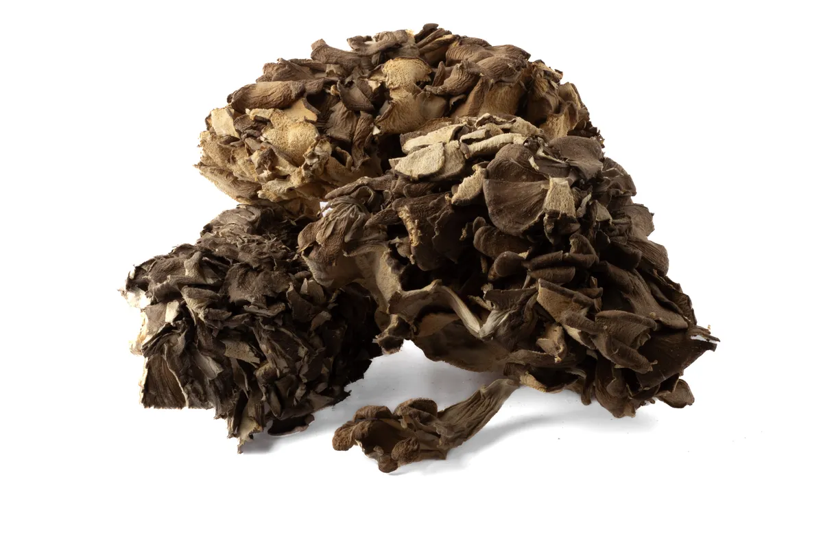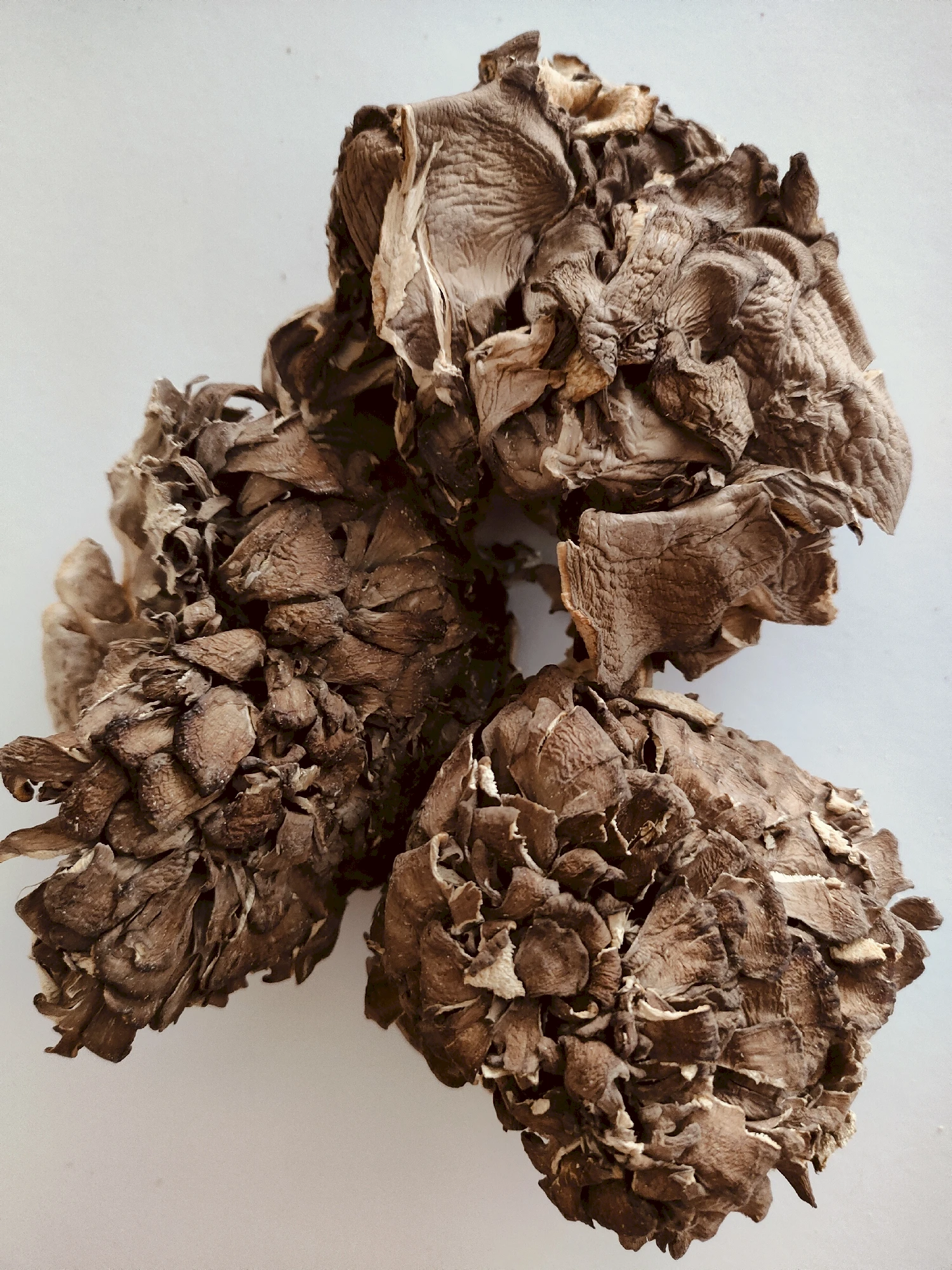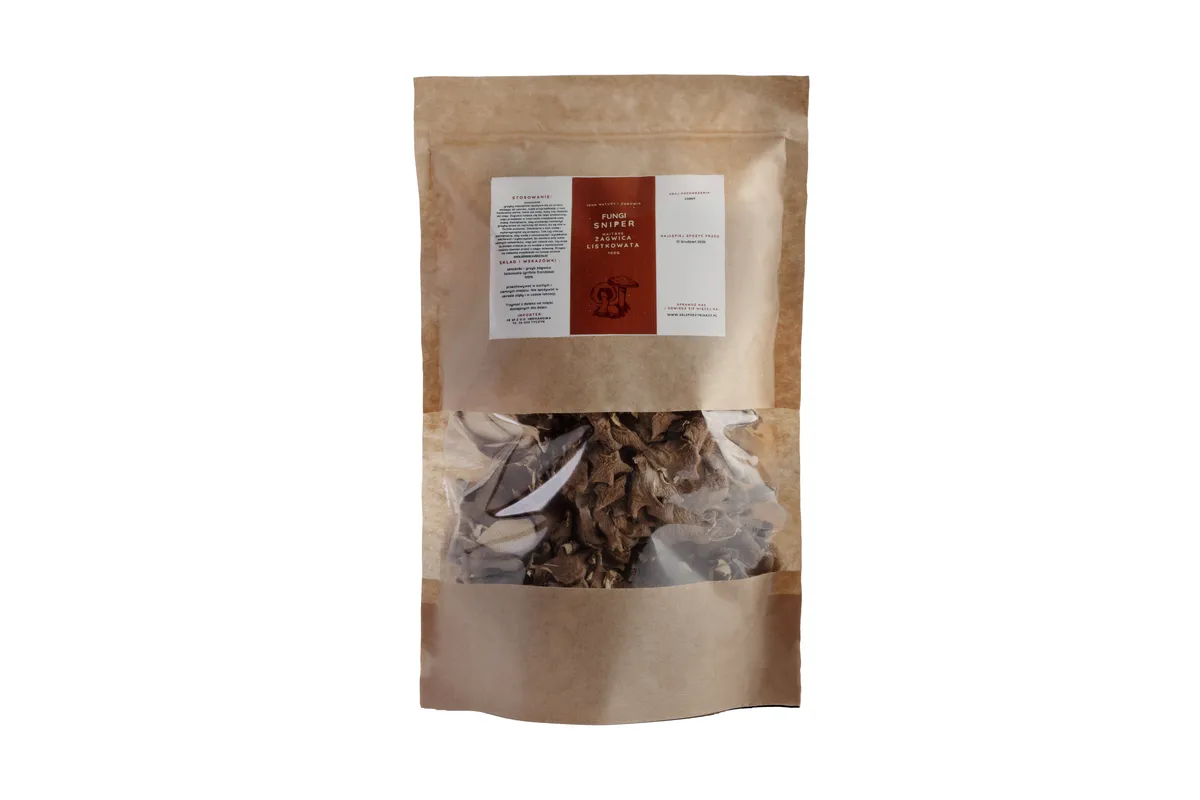 100% żągwica listkowata (Grifola frondosa) 100g – Maitake – grzyb ten jest bardzo popularny w kuchni azjatyckiej i zdobywa coraz większą popularność w kuchni niemieckiej i francuskiej. Maitake, czyli po polsku żagwica listkowata występuje w naszych polskich lasach, ale jest pod ochroną, dlatego musimy go importować z Chin. Nie obawiaj się jednak. Nasz dział kontroli jakości stale monitoruje dostawy i możemy Ci zagwarantować, że dostajesz od nas produkt z najwyższej półki! Żagwica listkowata to grzyb nie tylko o cenionych właściwościach kulinarnych ale również, albo przede wszystkim jest to tzw. super food i grzyb o właściwościach prozdrowotnych! Posiada potwierdzone właściwości antyoksydacyjne, przeciwzapalne, immunomodulacyjne i wspomagające układ odpornościowy. Regularne spożywanie żagwicy reguluje poziom cukru we krwi, zmniejsza nadciśnienie, redukuje cholesterol i trójglicerydy. Ma potwierdzone właściwości przeciwnowotworowe (rak piersi, prostaty, wątroby i płuc), wspomagając organizm w walce przyczynia się do poprawy rokowań a czasami nawet do regresji wymienionych nowotworów. Spożywanie Maitake wpływa również pozytywnie na pracę i regenerację wątroby.